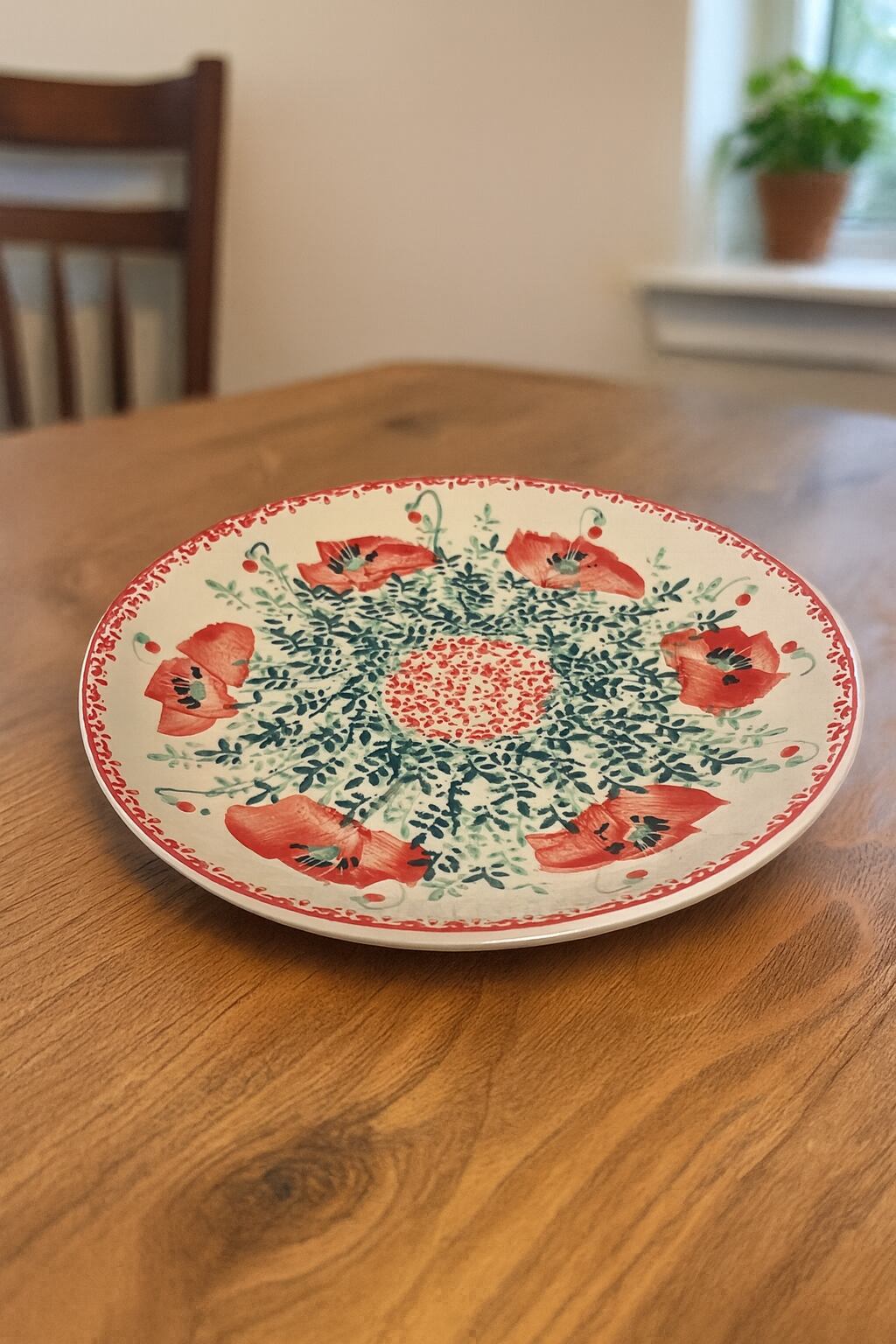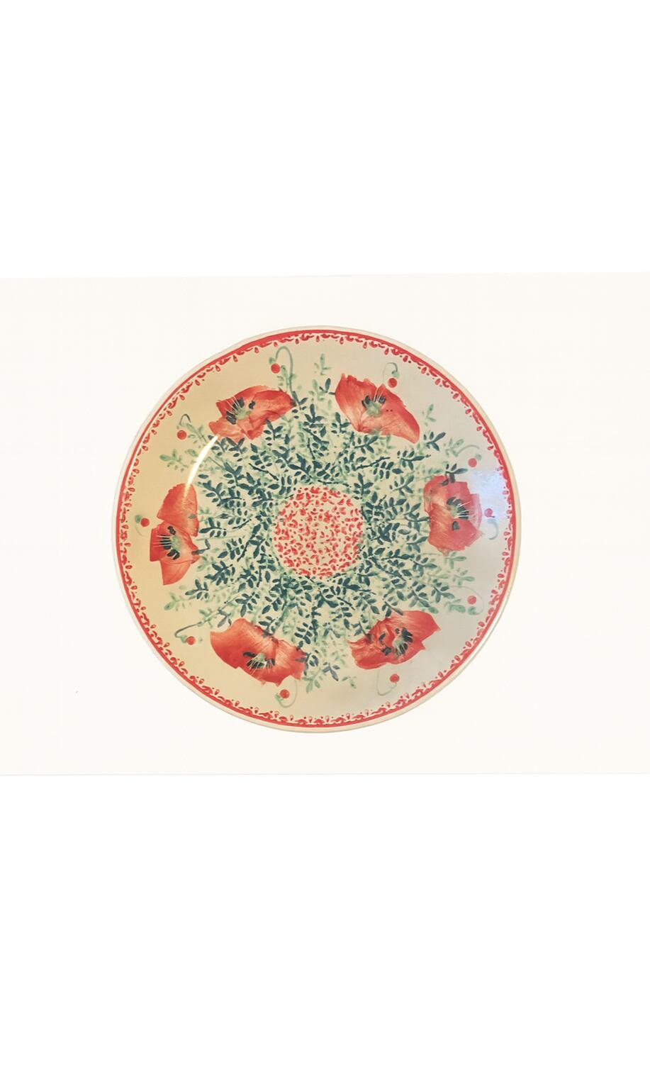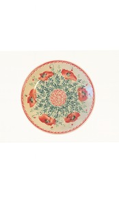 本品は、真っ赤なポピーの花をモチーフにした華やかなデザインが特徴的なプレートです。緻密な葉模様と鮮やかな赤のコントラストが美しく、空間に置くだけで存在感を放ちます。インテリアとして壁に飾ったり、雑貨として棚に並べても楽しめます。