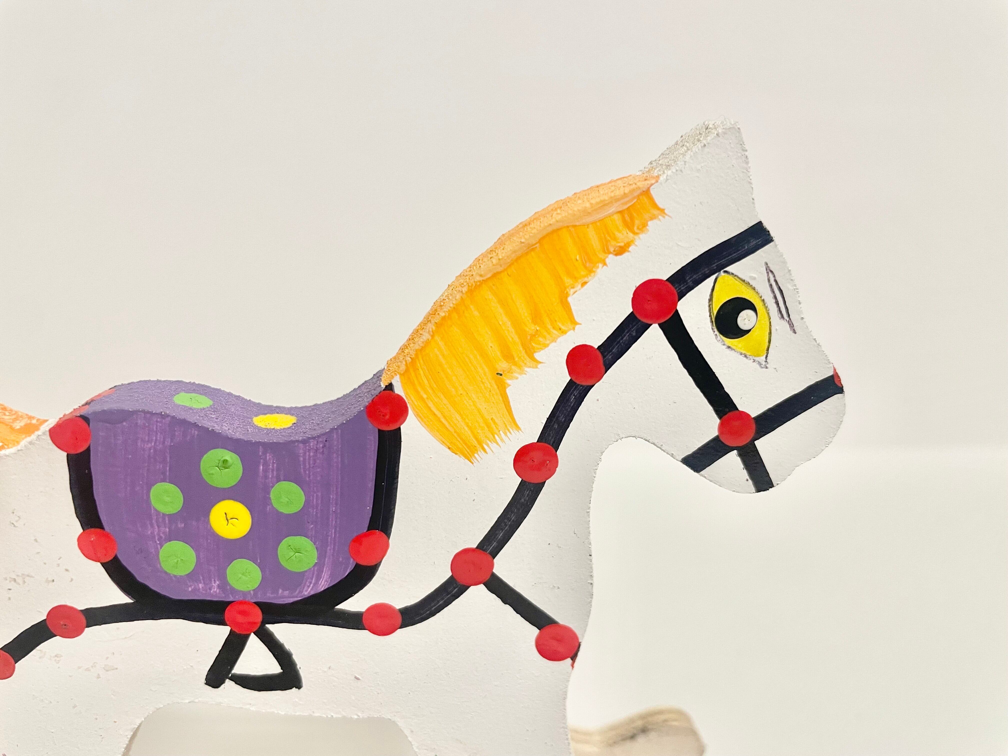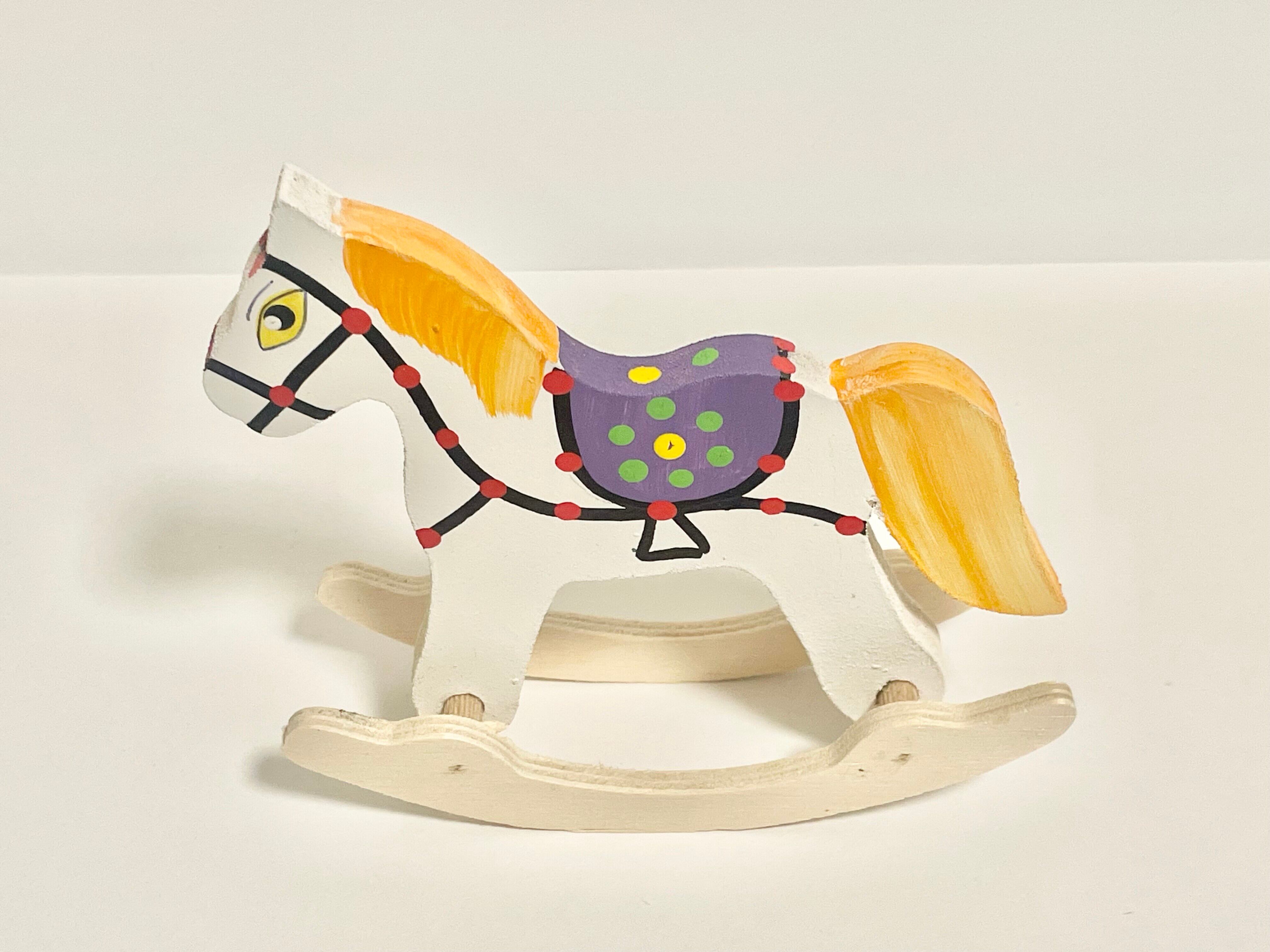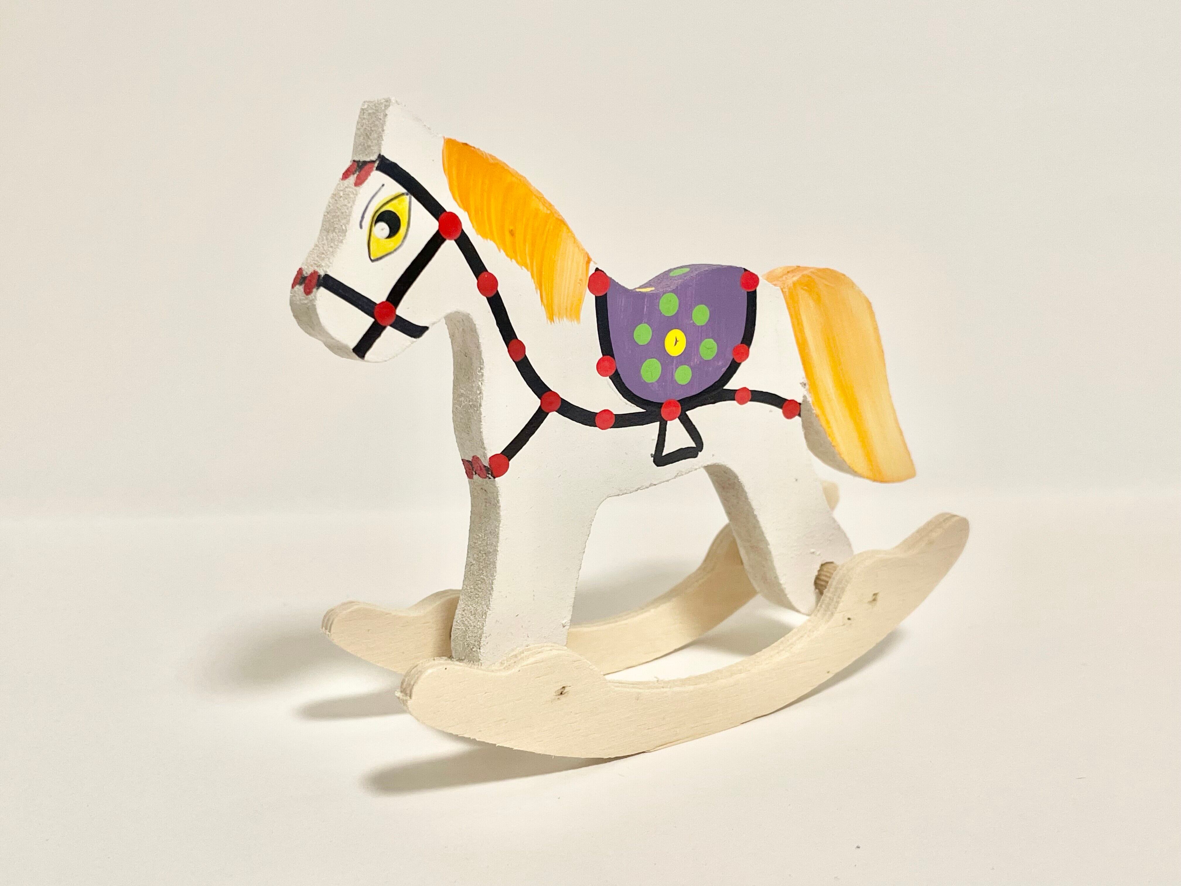 ポーランドの木工職人によって丁寧に作られた、カラフルなハンドメイドの木馬オブジェ。
